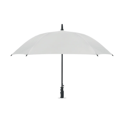 23-Inch Windproof Auto-Open Square Umbrella in 190T Pongee Polyester. Features Full Fibreglass Frame & Ribs, Rubber-Finished ABS Handle. Minimum Quantities Apply.