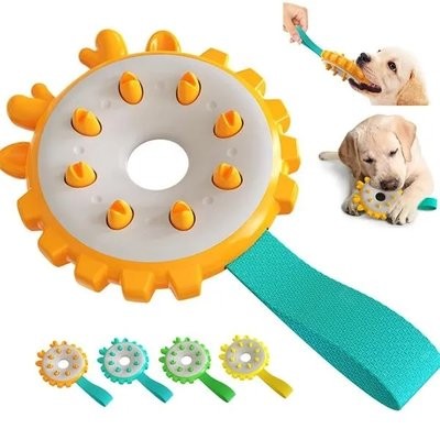 Enhance Your Dogs Playtime with Our Multifunction Toy, Perfect for Teeth Cleaning, Tug-of-war, & Frisbee. Its Unique Design Features Zigzag & Gear-shaped Rub Bumps to Clean Incisors, Canines, & Molars, Effectively Removing Tartar & Debris. the Nylon Braided Handle Allows for Easy Throwing, Encouraging Active Fetch Play. Apply Pet-specific Toothpaste on the Molar Bumps for Additional Dental Benefits. a Fun Way to Maintain Your Dogs Dental Health.