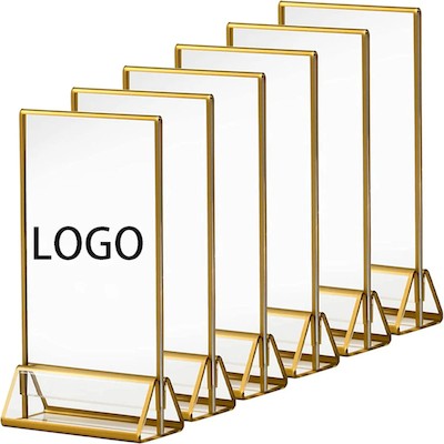a Display with a Gold Wire Frame That is Perfect for Limited Use! Placed on the Desk Top Will Appear Very Decent, Rich in Advanced Sense. Artwork is Printed Single or Double-sided on Acrylic-based Media. the Base is Constructed