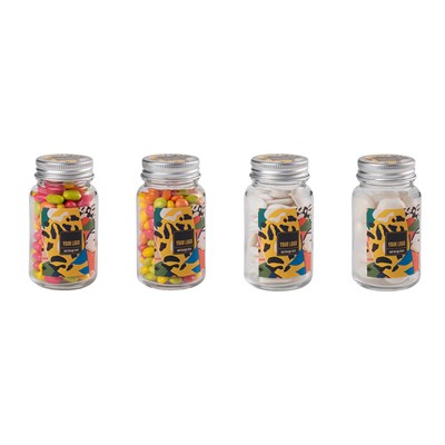 Advertising Sweets Jar of Joy Maxi Contents: Dots Pastilles 70 G, Minis Pastilles 70 G, Sugar-Free Chewing Gum 55 G, Mint&More Chewing Candies 35 G, Mint&More Chewing Candies 60 G Flavor: Dots Pastilles: Fruit, Mints or Mixed Flavours, Minis Pastilles: Fruit, Mints or Mixed Flavours, Chewing Gums: Mints or Watermelon Flavor, Mint&More: Mints Flavor Product Option: White or Kraft Label, Standard Print on the Cap, Optional Printed Label Additional Information: Glass Vial with Aluminium Metal Cap for Reuse in Accordance with the ‘Zero Waste Principle Minimum Quantity: 100