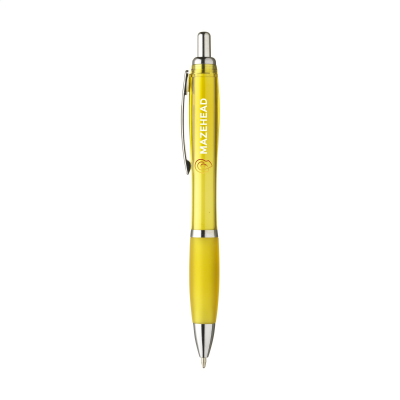 Blue or Black Ink Ball Pen with Transparant Colour Barrel, Non-Slip Grip & Metal Clip. Minimum Quantity: 1