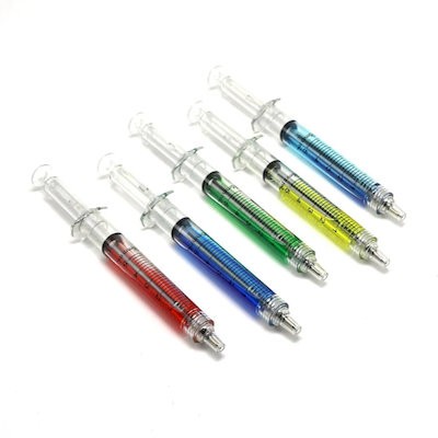 This Medical Themed Syringe Shape Ball Pen Pen is a Unique & Fun Promotional Product Giveaway. Great for Hospitals, Pharmacies, Doctor, & Nurse. Customized with Your Companys Information It is Perfect for Any Healthcare Field. Complies with Cpsia, Prop 65. 5.25 Inch L x 0.5 Inch W