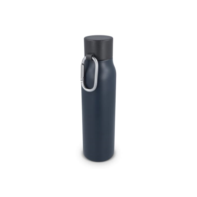 Solid 600Ml Thermo Bottle with Matt Finish. the Cap has a Carabiner to Attach to Your Bag & Easy Carrying. Each Packed in Giftbox. Minimum Quantities Apply.