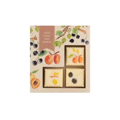 Chocostamp Cocoa Garden Pralines 3 Pcs About the Product: Chocostamp Cocoa Garden Pralines 3 Pcs is a Promotional Gift That Creates Positive Brand Associations From the Very First Glance. Its Subtle Form, the Natural Look of the Packaging & Precise Personalisation Make This Set a Perfect Match for Modern Companies That Care About Image & Business Relationships. Chocostamp Cocoa Garden Pralines 3 Pcs – an Elegant Praline Set with Personalisation The Set Includes Three Pralines with a Total Weight of 25.5 G , Made From White Chocolate Containing 27% Cocoa Butter . Each Praline Offers a Clearly Defined Flavour: Apricot , Blackcurrant , & Gooseberry Filling. This Carefully Selected Mix Stands Out & Stays Memorable. the Key Advantage is the Possibility of Personalisation—Both the Packaging & the Chocolate Itself (By Applying a Graphic), Turning the Pralines into a Tasteful Carrier of Your Brand’S Visual Identity. Chocostamp Cocoa Garden Pralines 3 Pcs – Natural Packaging & Eco-Friendly Solutions The Standard Option Uses White Paper , with Kraft Paper or Ecru Paper with Added Grass Fibres Available as Upgrades—Highlighting the Product’S Eco-Friendly Character. the Insert is Made From R-Pet , I.E. Recycled Pet Material. These Choices Reinforce a Message of Environmental Responsibility & Premium Quality, Increasingly Important in B2b Communication. the Pralines Look Professional & Refined While Meeting the Expectations of Companies Focused on Sustainable Solutions. Recommended Business Occasions: • Gifts for Clients & Partners During Industry Meetings or Promotional Events, • an Elegant Present for a Company Anniversary or Board-Level Meetings. Contents: Assortment of 3 Pralines with Personalization (Total 25,5 G) Flavor: Milk Chocolate (33% Cocoa) with Apricot Filling, Milk Chocolate (33% Cocoa) with Blackcurrant Filling, Milk Chocolate (33% Cocoa) with Gooseberry Filling, Mix of Flavors Product Option: White Paper by Default, Kraft Paper & Ecru Paper with the Addition Minimum Quantity: 100