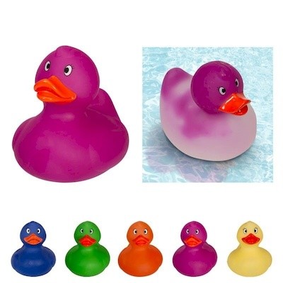 PVC Rubber Duck Changing Color When Water Temperature Reaches Hot. Duck Starts a Color & Changing to White. Ducks Are Not Weighted. Its Not Designed for Use as Accurate Measurement of Temperature. Production Times May Vary Due to Imprint Method, 3.125 Inch W x 3.75 Inch H x 4 Inch D
