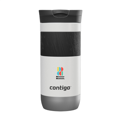 0 470 Ml Thermo Cup in White. Double-Walled Stainless Steel Metal Contigo® Thermos Cup: Vacuum Isolated, Equipped with a Large, Non-Slip Rubber Grip & Spout with Snapseal™ Technology Which Makes It Easy to Drink. Click the Button Up with Minimum Quantity: 8