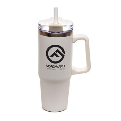 900ml Double Walled, Recycled Stainless Steel Metal Travel Mug with Built in Recycled Pp Handle, Eva Foam Bottom Pad & a Powder Coated Finish. Featuring a Clear Transparent Lid, Recycled Pp Plastic Colour Slider, Rpe Colour Straw & Silicon Seal. Bpa & PVC Free. Minimum Quantity: 25.