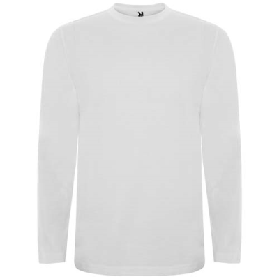 Long-Sleeve Tee Shirt in Tubular Fabric & 4-Layer Crew Neck. Reinforced Covered Seams in Collar & Shoulders. No Cuffs. Minimum Quantities Apply.