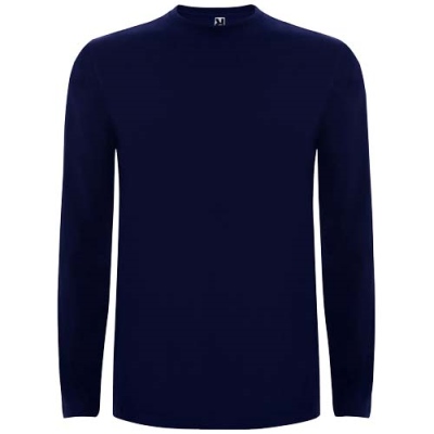 Long-Sleeve Tee Shirt in Tubular Fabric & 4-Layer Crew Neck. Reinforced Covered Seams in Collar & Shoulders. No Cuffs. Minimum Quantities Apply.
