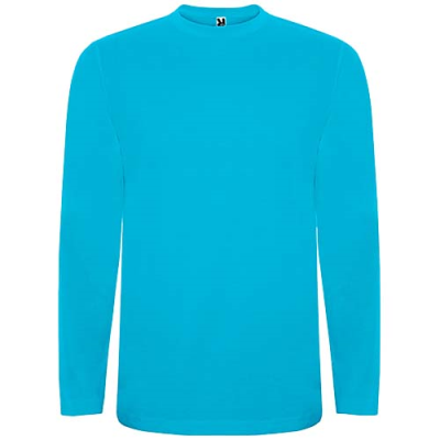 Long-Sleeve Tee Shirt in Tubular Fabric & 4-Layer Crew Neck. Reinforced Covered Seams in Collar & Shoulders. No Cuffs. Minimum Quantities Apply.