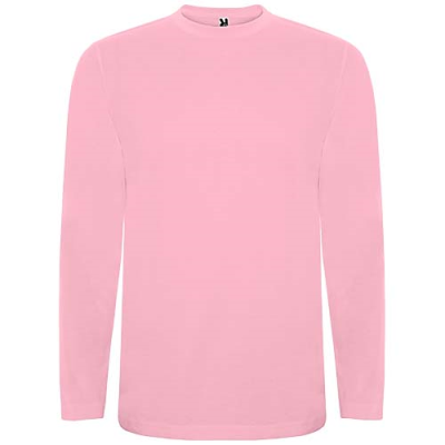 Long-Sleeve Tee Shirt in Tubular Fabric & 4-Layer Crew Neck. Reinforced Covered Seams in Collar & Shoulders. No Cuffs. Minimum Quantities Apply.
