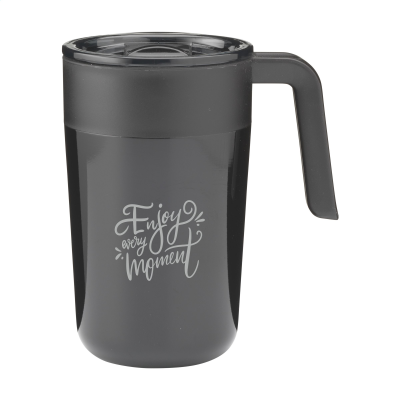 Double-Walled Thermos Cup Made From Recycled Stainless Steel Metal & Pp. with a Beautiful High-Gloss Finish This Cup Features a Plastic Handle & Easy Close Push-On Lid with Sliding & Click Opening. S Minimum Quantity: 1
