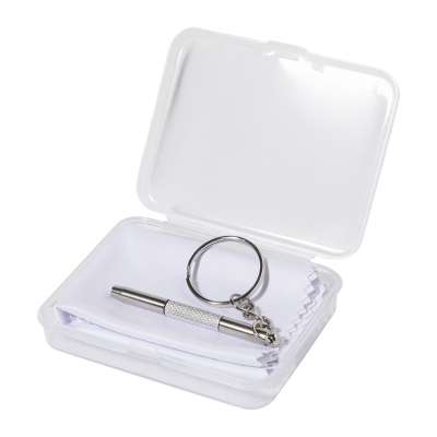 Compact Glasses Repair Kit in Clear Transparent PP Box. Including 100% RPET Microfibre (220 G & M²) Cleaning Cloth & Mini Screwdriver with Keyring. Cloth Size: 18×15 Cm. Minimum Quantities Apply.