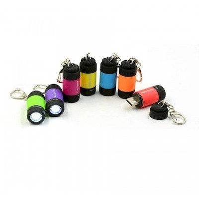 the Custom Torch Comes with 70mah Lithium Batteries & Can be Recharged with USB Port. It Features Plastic Tubular Barrel & One LED Light. Simply Turn Front Switch to Turn on the Light