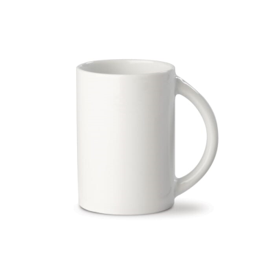 Porcelain White Mug. High & Elegant Model with a Large Handle. Minimum Quantities Apply.