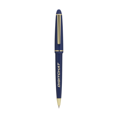 Blue Ink Ball Pen with Polished Barrel, Gilded, Ornate Clip & Point & Twist-Action Tip. Minimum Quantity: 1