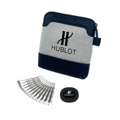 Quatro Pokerchip Caddi Elite Bag in Cream & Black with Zip, Printed Up to Full Colour to 1 Side, Packed Loose with 12 White 70Mm Tees Printed Up to 3 Colours on the Shank & 1 x Quatro Metal Pokerchip with Up to Full Colour Resin Dome 26Mm Square Ball Marker. Fabric is Cotton Mixed Linen & PU Leather Trim to the Bottom. Upgrade to Include a 47Mm Black Carabiner for an Additional Cost Bag : Cream & Black. Tee Default is White Although We Can Offer Up to 17 Other Colours. Pokerchip : Gunmetal Minimum Quantity: 24