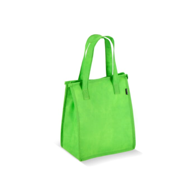 5Cm 75G & M² in Pale Green. Lunch Cool Bag Made From Recycled Pet Non-Woven Material (75G & M²) with Aluminium Metal Foil Lining. Compact & Practical. Minimum Quantities Apply.