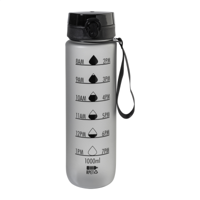 Frosted RPET Sports Bottle with Motivational Volume & Time Markings, Featuring an Auto-Open Flip-Top Drink Lid with Safety Lock & Carry Strap. 1000 Ml. Bpa-Free. Not Suitable for Carbonated Drink. Minimum Quantities Apply.