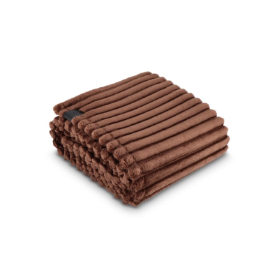 the Esther Fleece Blanket is Soft, Warm, & Sustainable, Made From Recycled Polyester. Its Deep Modern Tones with Subtle Stripe Create a Timeless Look. with 340 G & M² It Feels Luxurious Yet Light & Portable, Perfect for the Sofa, Terrace, or Outdoor Trips. Packed in a Luxury Gift Box. 130×170 Cm Minimum Quantities Apply.