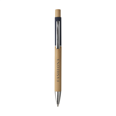 Blue Ink Ball Pen with Barrel & Push Button Made From FSC 100% Certified Bamboo. Metal Clip. the Top of the Barrel is Covered with an Attractive Rubber Coating. Minimum Quantity: 1