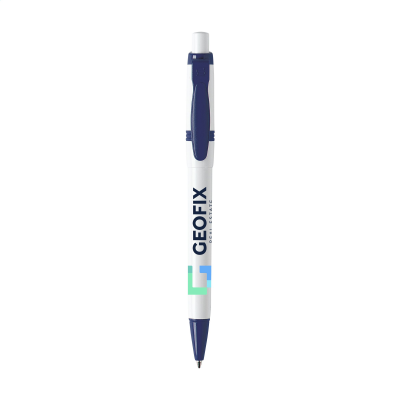 Blue Ink Ball Pen with Colour Clip & Point. Made in Italy. Minimum Quantity: 250