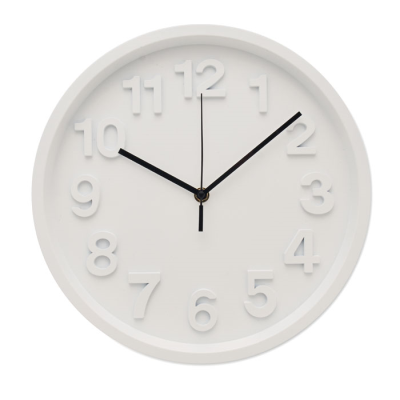 Wall Clock in PP with Aluminium Metal Hands & Silent Movement. Requires 1 Aa Battery (Not Included). Minimum Quantities Apply.